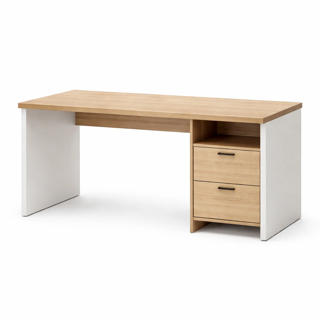 Escritorio de Aglomerado y MDF Blanco y Roble con Cajones
